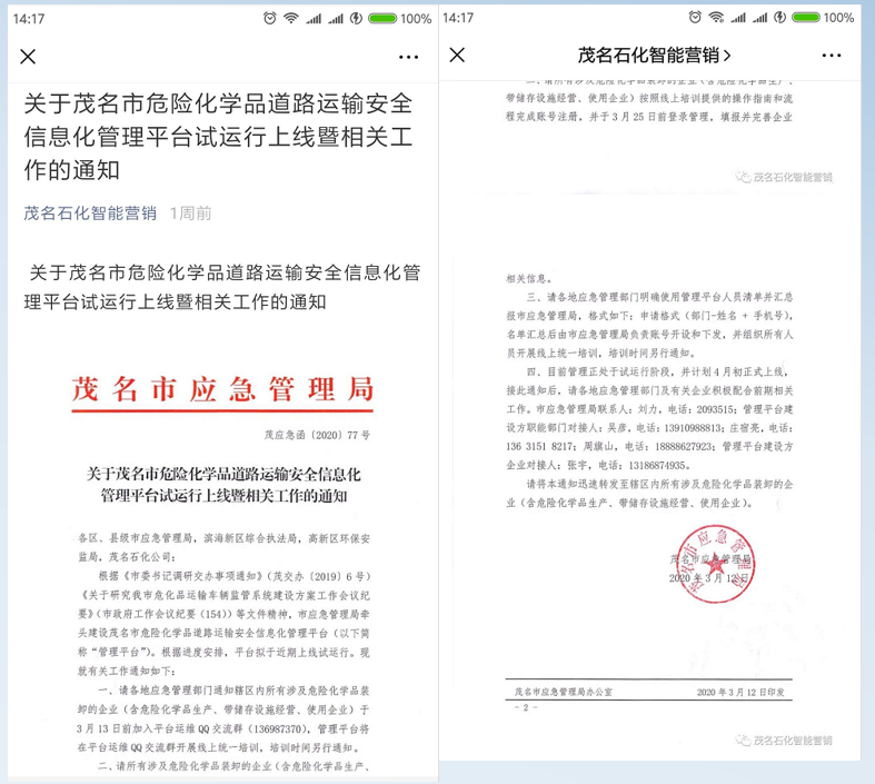描述信息:茂名市危险化学品道路运输安全信息化管理平台上线
